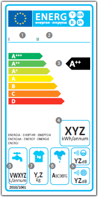 Der technische Fortschritt bei den Waschmaschinen hat zu vielen konkreten Verbesserungen geführt. Vor allem die Energieeffizienz, die Vielfalt der Funktionen und der Bedienungskomfort wurden so stark verbessert, dass eine Anpassung der Energieetiketten notwendig wurde. Die neue Energieetikette enthält jetzt folgende Angaben: